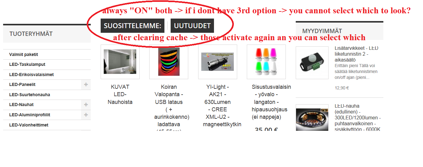 Valoilmio Posted April 9, 2014 Share Posted April 9, 2014 Hi after few days usage i see this happening always. if you have recommended product,new producs and best sales in the front page -> the recommended and new products are "fused" together after clearing (as admin) the store cache it becomes again selectable. Please see photo. Link to comment Share on other sites More sharing options...
