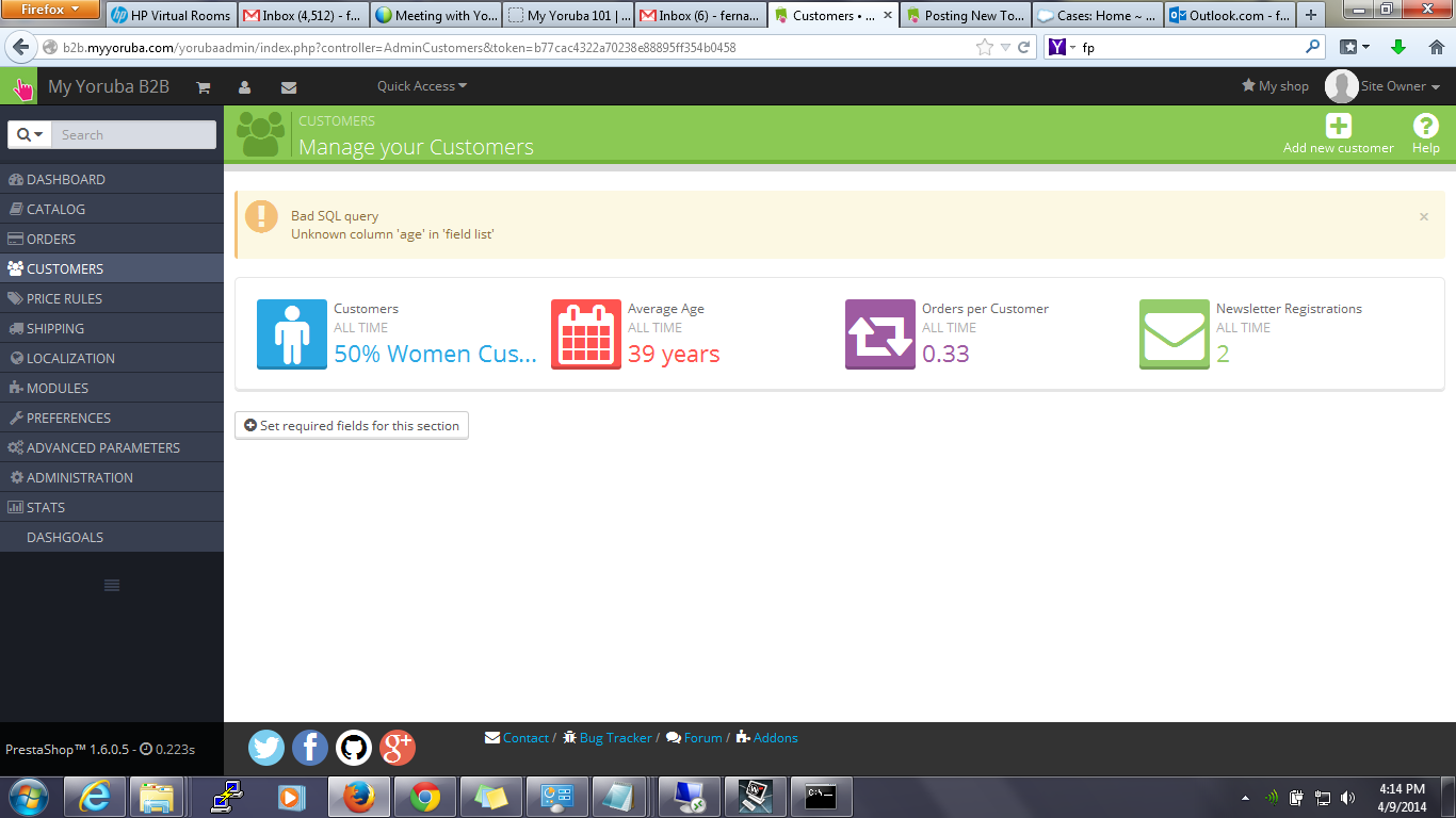 mircosarto Posted September 28, 2014 Share Posted September 28, 2014 hi i've the same problems after upgrading from ps 1.5 to 1.6 How did you solved this problem in customer view ? message is "prestashop Unknown column 'age' in 'field list' many thanks in advance for your help Mirco Link to comment Share on other sites More sharing options...