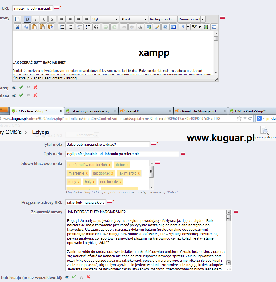 Dlaczego w xampp'ie dodając strony cms posiadam edytor tekstu, a na stronie internetowej w preście go nie ma? Poniżej zdjęcie co mam na mysli: