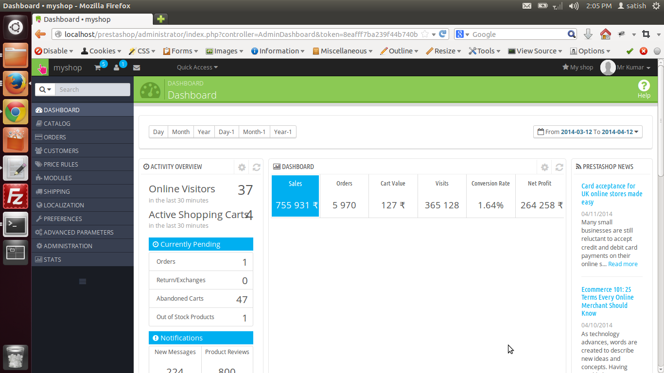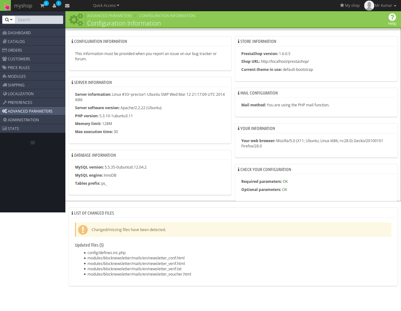 mr-kumar Posted April 12, 2014 Share Posted April 12, 2014 Hi all, I am a developer and just started learning prestashop. I have installed prestashop on my local computer, and facing the following problems. 1) Admin page shows that it is missing some css files (sreen shot - Admin-in-Console.png) 2) Front page is also missing some css files (screen shot - front-page-console.png) if fact i am not able to do anything with it apart from loging in as admin.. Below is the my local machine envoirnmenet : Ubuntu 12.04lts php 5.3.10 Please help what i am missing. thanks Link to comment Share on other sites More sharing options...