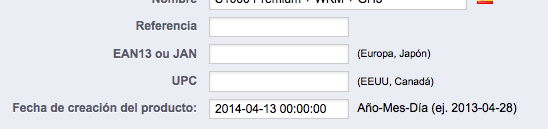 Cosmos Posted April 13, 2014 Author Share Posted April 13, 2014 Muy buenas, he seguido la siguiente indicación: Mi arreglo ha sido el siguiente:... editar el archivo "/admin/themes/default/template/controllers/products/informations.tpl"Buscar en la línea 145, justo antes de cerrar el :</tr></table>Cambiar por este bloque de código, con lo cual insertamos otra fila:<tr><td class="col-left"><label>Fecha de creación del producto:</label></td><td style="padding-bottom:5px;"><input size="55" maxlength="13" type="text" id="date_add" name="date_add" value="{$product->date_add}" class="datepicker" style="width: 130px; margin-right: 5px;" /> Año-Mes-Día (ej. 2013-04-28)</td></tr></table> es lo único que he hecho,... Link to comment Share on other sites More sharing options...