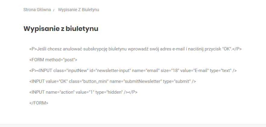 Po tej operacji gość otrzymując e-maila potwierdzającego subskrypcję biuletynu, ma możliwość anulowania tej subskrypcji (zgodnie z jakimś tam obowiązującym prawem