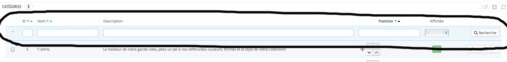 thierry2 Posted April 16, 2014 Author Share Posted April 16, 2014 je suis tj sur mon problème,j'ai remarquer que sur une presta neuve j'ai les petits filtres Nom Description La position Affichée Sur mon site aucun filtre sur ma page de produit. Link to comment Share on other sites More sharing options...