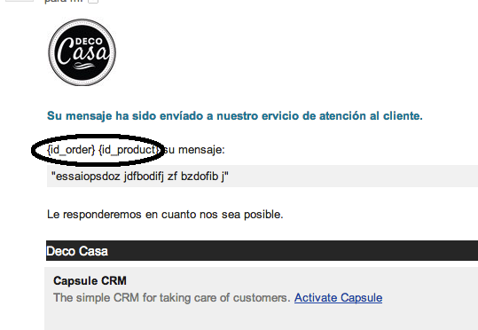clemencizm Posted April 15, 2014 Share Posted April 15, 2014 Bonjour, Je rencontre un problème avec l'email de confirmation d'envoie d'un formulaire de contact. En effet, le fichier contact_form.html est apparemment bien configuré puisque contient la ligne suivante qui devrait appelé correctement les informations en question: <td align="left">{id_order} {id_product} su mensaje: <div style="width: 538px; background-color: #f4f4f4; margin-top: 10px; padding: 5px;">"{message}"</div> </td> Mais l'email que je reçois, quand je teste en tant que client, m'affiche {id_order} {id_product} au lieu de m'afficher les références correspondantes. Je suis sous prestashop 1.5.6.2 Link to comment Share on other sites More sharing options...
