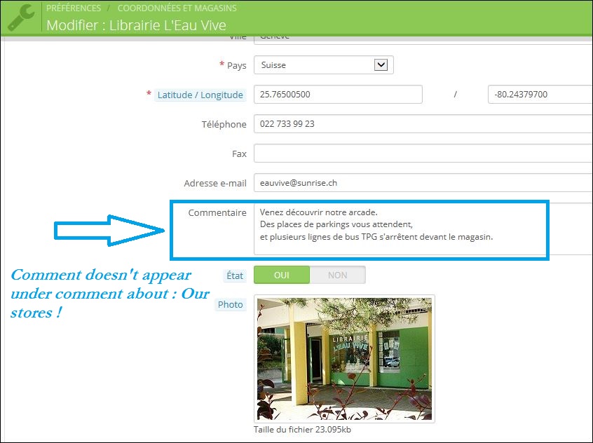myselfidem Posted April 16, 2014 Share Posted April 16, 2014 (edited) Hello, When we add a comment about Our stores, this one doesn't appear Under the the image's stores ! It's seems is missing some code or I missing something ? Thanks Edited April 24, 2014 by myselfidem (see edit history) Link to comment Share on other sites More sharing options...
