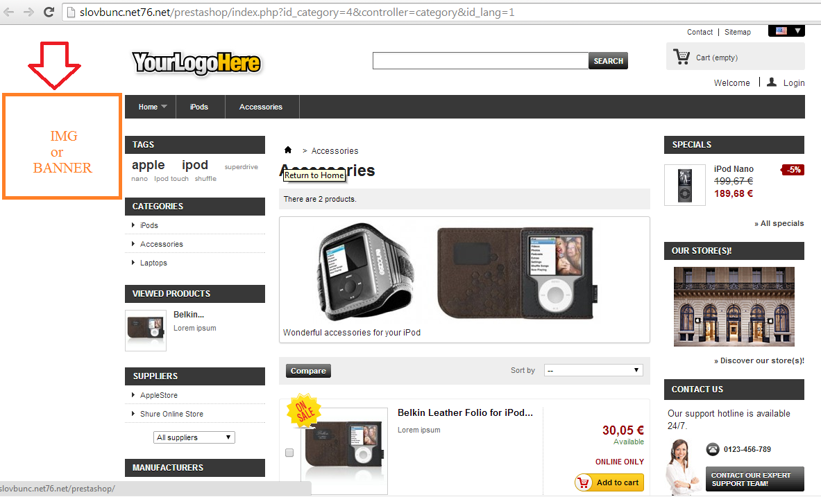 jokerstar Posted April 18, 2014 Author Share Posted April 18, 2014 well, I tried it with your html editor. I open it and select left column, then editor OFF and paste this there <div style="width:200px; display:block; position:absolute; left:200px;"> <img src="http://slovbunc.net76.net/prestashop/themes/default/img/onsale_en.gif"> </div> after save code was: <div 200px="" display:block="\"\"" position:absolute="\"\"" left:200px="\"\""> <div style="0width: 200px;" display:block="" position:absolute="" left:200px=""><br /><img src="\"http://slovbunc.net76.net/prestashop/themes/default/img/onsale_en.gif\"" /></div> </div> here is result: http://slovbunc.net76.net/prestashop/index.php?id_category=4&controller=category&id_lang=1 positioon of image (banner) is not in upper left corner of display, or left from left column. Link to comment Share on other sites More sharing options...