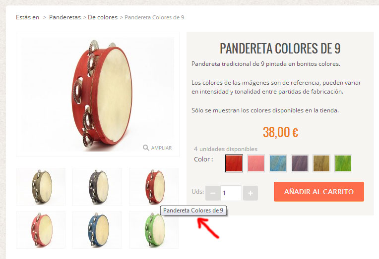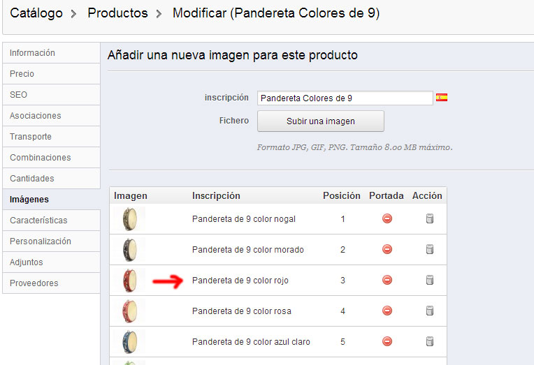 Alberto Fernández Posted April 19, 2014 Share Posted April 19, 2014 (edited) Prestashop 1.5.6.1 permite añadir inscripciones en las imágenes de producto: pero en las miniaturas del thickbox muestra el nombre del producto en lugar de la inscripción: ¿De qué manera se puede corregir esto? Uso la plantilla Sellya, no sé cómo sale en la plantilla por defecto. Edited April 19, 2014 by Alberto Fernández (see edit history) Link to comment Share on other sites More sharing options...