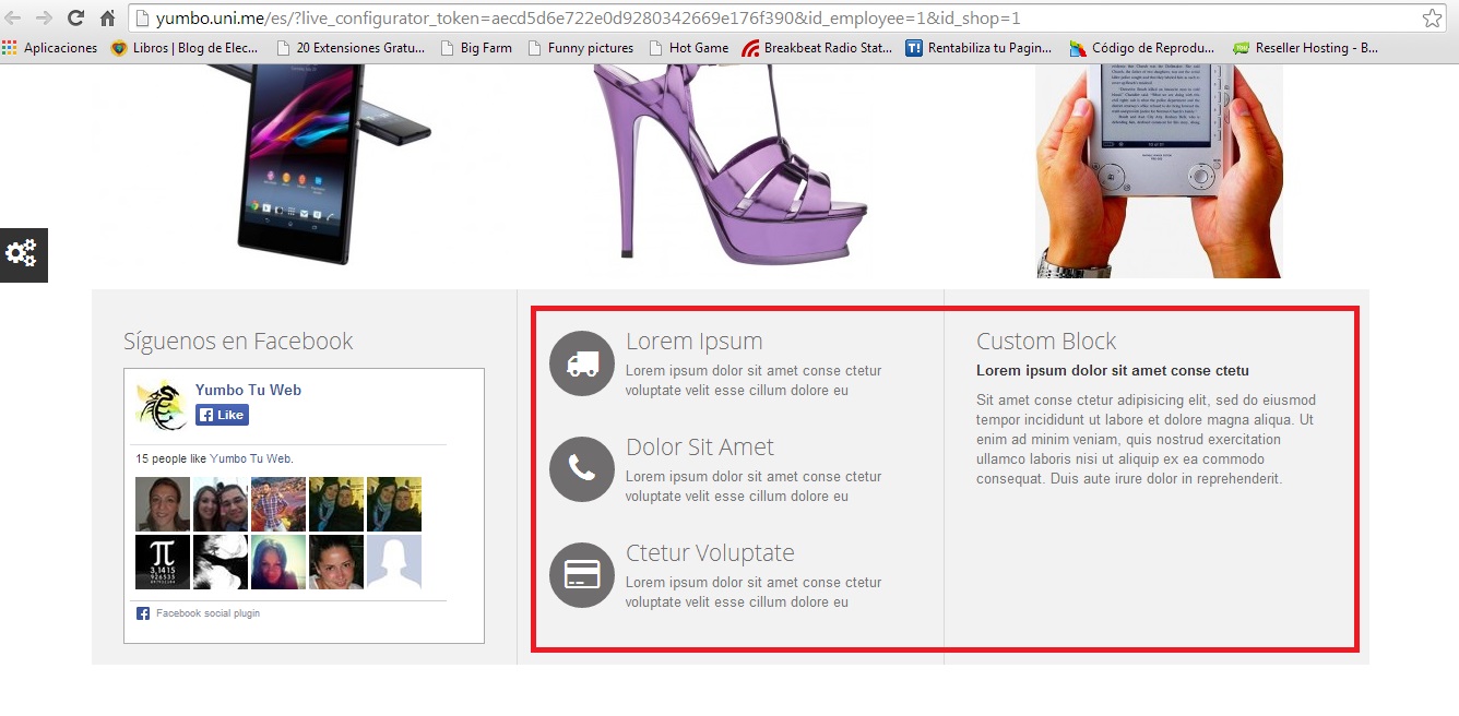 mikel EPALZA Posted April 21, 2014 Share Posted April 21, 2014 Buenas quisiera cambiar lo que sale de custom block y lo de lorem ipsum y demás del front office. Voy a adjuntar una foto para que se vea mejor. Gracias por la ayuda. Hola danimr, Por tu mensaje entiendo que utilizas la versión 1.6.0.x de prestashop. De ser así, el módulo que buscas se llama "Personalizar bloque de información CMS" un saludo Miguel Angel Epalza Gerente de: http://www.or-com.es/megacom Link to comment Share on other sites More sharing options...
