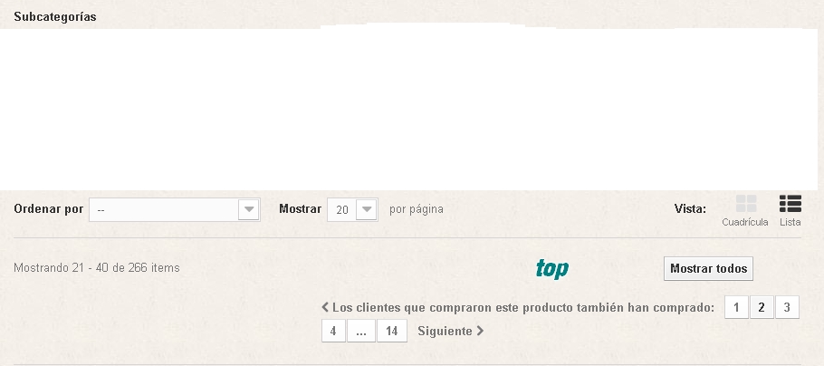 andysilva Posted April 21, 2014 Share Posted April 21, 2014 hi version 1.6.0.6 the problem: in a category for example with 250 products, and limit 50 per page. page 1 : it shows pagination numbers 1 - 2 - 3 - 4 in the top (just after category description), and in the bottom. page 2: only shows pagination numers on the top, in the botom, shows : "show all" Is there any way to show numers of pages also in the bottom, which is the normal way. Thanks Link to comment Share on other sites More sharing options...