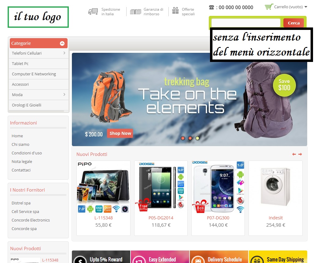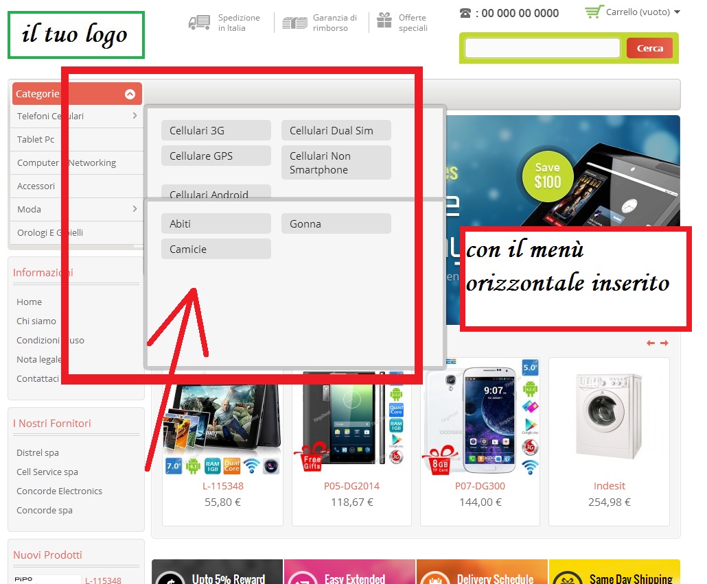 marcellolaforgia Posted April 22, 2014 Share Posted April 22, 2014 Carissimi forumisti e tecnici, ho appena sistemato sul mio sito costruito con Prestashop il Block Mega Menù per le categorie (in cui possono essere anche inserite altre sezioni), posizionato in displayTop. Ho, però, un problema: nel momento in cui installo, configuro e posiziono anche il Menù orizzontale, questo non solo non compare, ma sembra accavallarsi sul Mega Menù (allego una immagine). Secondo voi cosa potrei fare? Quale dev'essere la posizione dei due menù? Sto utilizzando la nuova release di prestashop, la 1.6, e come template megashop. Vi ringrazio. Marcello Link to comment Share on other sites More sharing options...