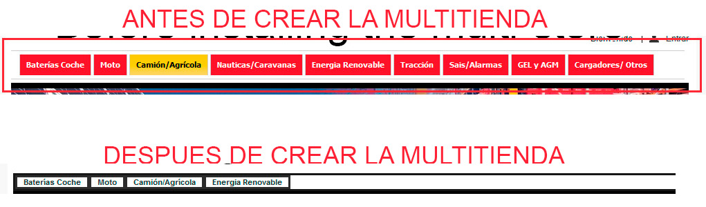 Ernight Posted April 23, 2014 Share Posted April 23, 2014 Hola, Al crear una nueva multitienda, cuando la creo se me desconfigura toda la barra del modulo ADVANCED_TOP_MENU. Adjunto unas imagenes del problema que tengo, el problema es que se me desconfigura en la tienda por defecto, desaparecen categorias, en las otras tiendas me da igual ya que al fin y al cabo tengo que crear las categorias de cero. He mirado en el backoficce y el modulo se desconfigura por completo, al borrar la otra tienda, vuelve otra vez al estado normal. Ya que este modulo conlleva mucho trabajo, ¿como puedo crear la multitienda, para que la tienda por defecto no se modifique la barra de categorias? Muchas gracias de antemano. Un saludo! Adjunto imagen con el error; Link to comment Share on other sites More sharing options...