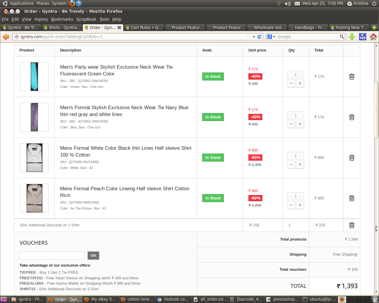 freemall Posted April 26, 2014 Author Share Posted April 26, 2014 You are true, but if some one selects any other product which is cheaper then the ties, discount applied on that. Link to comment Share on other sites More sharing options...