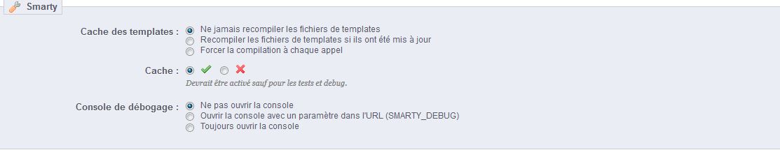 SBR22 Posted April 24, 2014 Author Share Posted April 24, 2014 vous n'auriez pas forcé la recompilation du cache des templates à chaque appel ? non du tout, on utilse les performances maximales définie par les utilisateurs de PS Link to comment Share on other sites More sharing options...