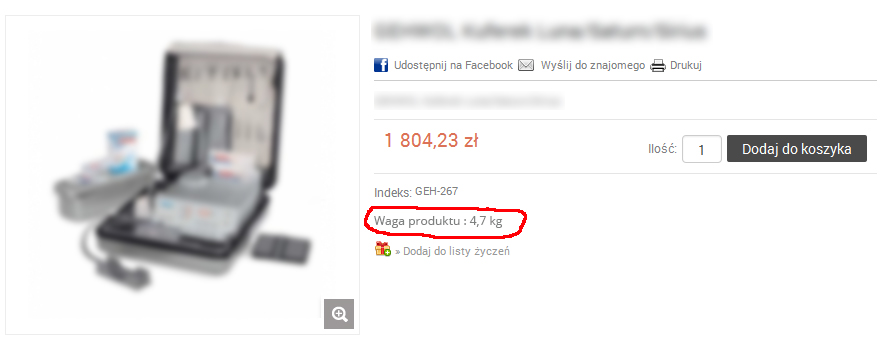 Co trzeba zrobić żeby wyświetlić wagę produktu tuż pod jego indeksem ?