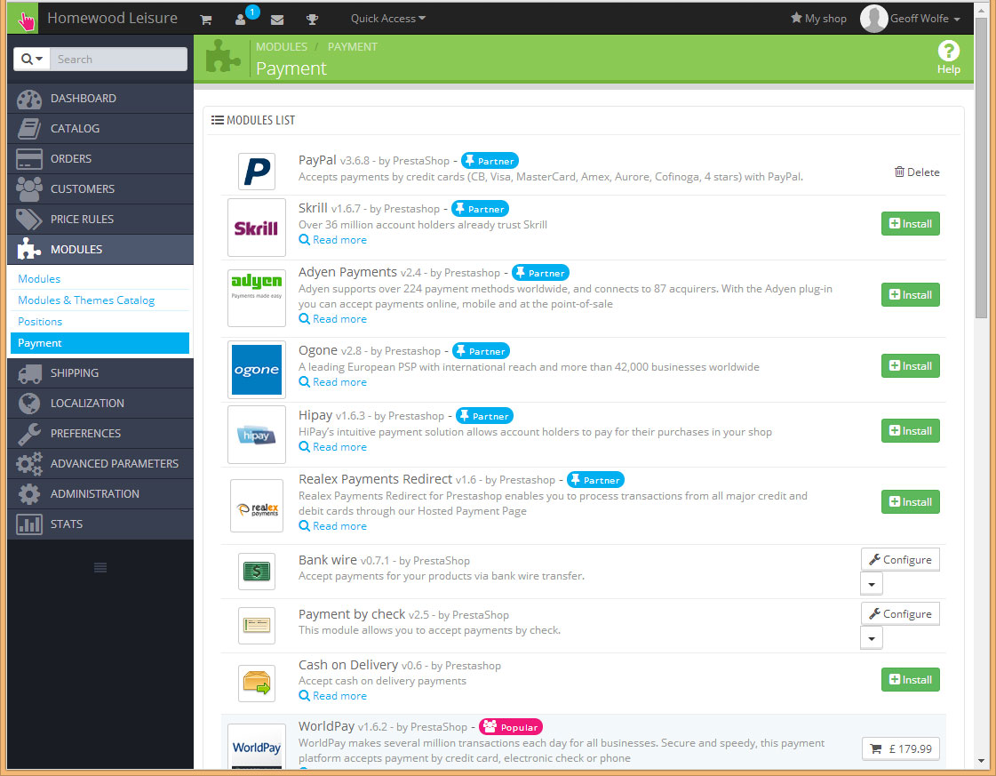 Geoff1066 Posted May 1, 2014 Author Share Posted May 1, 2014 Success! I have uploaded via ftp and changed the permissions. Now when I go to >modules >modules >payments and gateways it is there if I sort by modules not installed via the dropdown. I am now able to install and configure... yay! Thanks to everyone for your help. A couple of notes for anyone else that gets confused while trying to get paypal working for UK... 1. Prestashop says it comes with paypal module built in. It doesn't (or at least my version 1.6 didn't), so you will need to download the module from here... http://addons.prestashop.com/en/payments-gateways-prestashop-modules/1748-paypal.html and install it yourself. 2. The download page lists the European countries that the module works with. UK isn't listed, which I found very confusing. However I confirm that it does work for UK sellers. 1 Link to comment Share on other sites More sharing options...