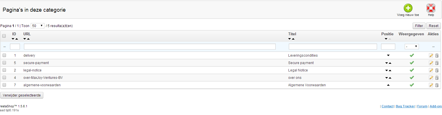 Hartung Posted May 1, 2014 Share Posted May 1, 2014 Hi guy's I'm having some problems to get cms pages in the footer. the webshop is www.techkoop.nl The footer looks like this: I have the cms pages here: The cms pages have the category "home" but will not show in the footer they need to be placesd under Customer Service. I need some help to solve this iI can provide access to the backoffice if needed! The shop is live but this is one of the last things that needs to be fixed. Link to comment Share on other sites More sharing options...