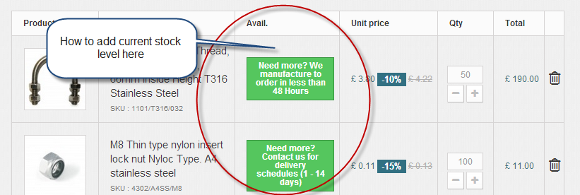 Guest Posted May 2, 2014 Share Posted May 2, 2014 I do wish Prestashop would build options into their designs The latest release theme update has changed the appearance of the shopping cart. It adds in the "availabilty" wording (Wording when in and out of stock). Which is OK, but it kind of suggests that we do not have enough stock I need to change this to also display the current stock levels Can anyone point me in the direction of the correct code and where to place it? Link to comment Share on other sites More sharing options...