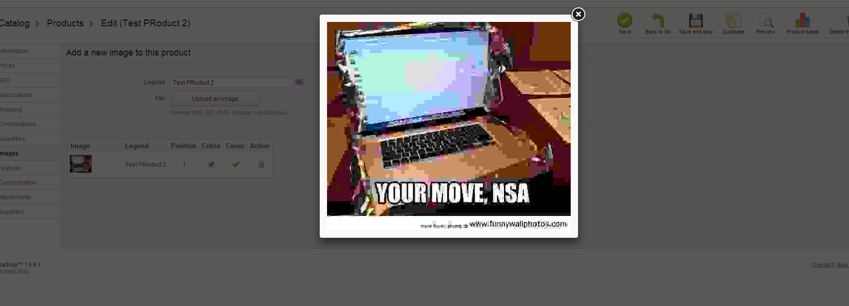 ruan567 Posted May 2, 2014 Share Posted May 2, 2014 (edited) Hi when uploading into prestashop 1.5.6.1 I see that the images get scaled down terribly. Strangely enough this wasn't always like the way it is now, it just started recently. I just took a random image and uploaded it as a product image to provide a sample and attached both here. I also attached a screenshot of my image settings. Any ideas why it would do this? Regards Ruan Edited May 2, 2014 by ruan567 (see edit history) Link to comment Share on other sites More sharing options...
