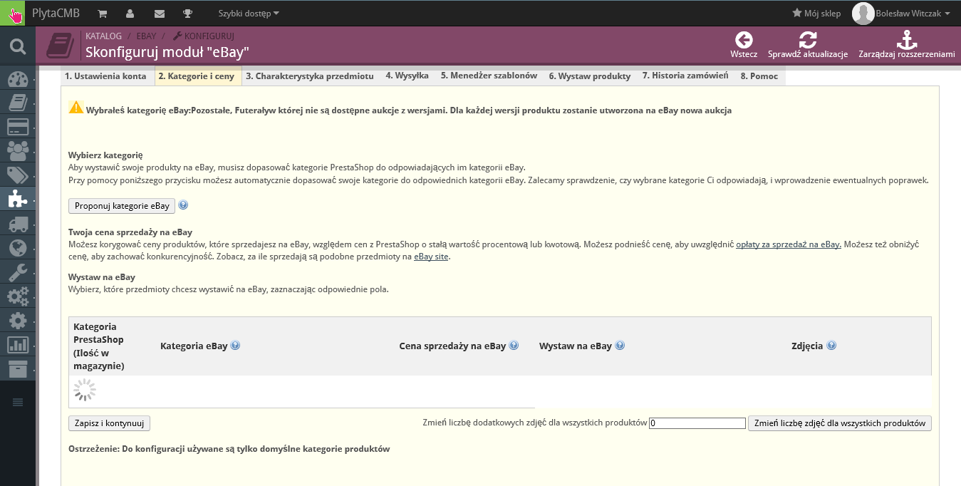 WartoWiedziec Posted May 4, 2014 Share Posted May 4, 2014 (edited) Witam, Po instalacji i "dopieszczaniu" sklepu czas zacząć pływać po szerokich Europejskich wodach. Zainstalowałem moduł eBay dla PS. Konfiguracja i połączenia z eBay poszły dość gładko. Natomiast problem mam z synchronizacją/ transferem kategorii sklepu do modułu w zakładce "Kategorie i ceny". Objawy: wirujący wiatraczek i zero reakcji mimo reinstalacji i ponownego autoryzowania modułu w eBay. Czy ktoś wie jakie parametry / programy są za to odpowiedzialne i gdzie je naprawić? http://plytacmb.pl PS 1.6.0.6 ===================== Gdyby komuś się to przytrafiło to rozwiązaniem jest zamknięcie SSL w BO>Preferencje>Ogólne na czas pobierania kategorii. A napisał o tym @Trip tutaj http://www.prestashop.com/forums/topic/304412-suggest-ebay-categories-not-working/?p=1660058 Byłoby dobrze, gdyby to naprawiono w najbliższej aktualizacji, chyba, że ktoś wie jak i gdzie zmienić kod. Edited May 4, 2014 by WartoWiedziec (see edit history) Link to comment Share on other sites More sharing options...