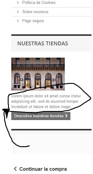 canuto Posted May 5, 2014 Share Posted May 5, 2014 (edited) Estoy montando una tienda en prestashop 1.6 y quiero cambiar un texo que pone: Lorem ipsum dolor sit amet conse ctetur adipisicing elit, sed do eiusmod tempor incididunt ut labore et dolore magn. Llevo un rato buscando pero no se donde se cambia, a ver si alguien me puede hechar un cable Adjunto una foto. Gracias por adelantado Edited May 5, 2014 by canuto (see edit history) Link to comment Share on other sites More sharing options...