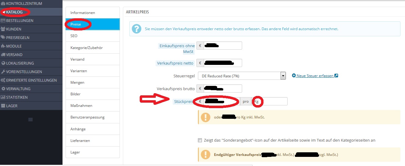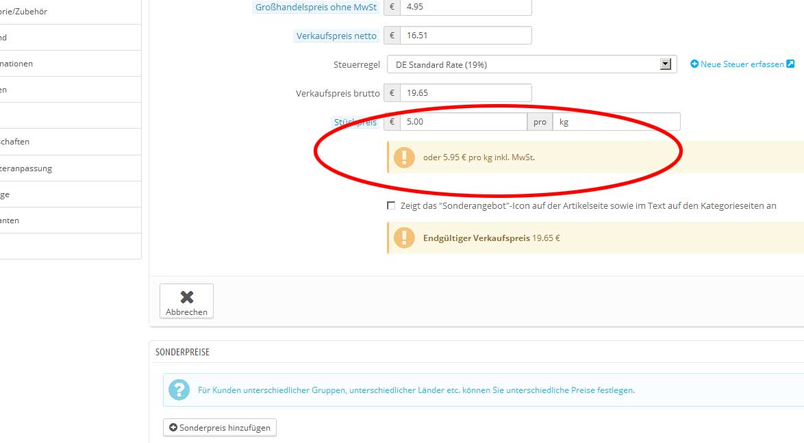 Hier nur um Missverständnisse zu vermeiden, hab mal nen Screenshot von der Sache gemacht und mit einem Roten Pfeil gekennzeichnet wo der Grundpreis von dir eingetragen werden muss.