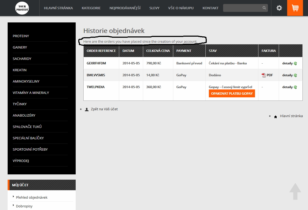 kirilvls Posted May 7, 2014 Share Posted May 7, 2014 Всем привет. Проблема такая, стоит купленный дизайн-шаблон ( prestashop) сайт http://yourprotein.cz/cs 1. при заказе, все отлично заказывается. все работает. Но зайдя в историю заказа, и нажав на "детали заказа" , страничка спускается вниз и отображается пустая облать, но при выделении пустой области ( нажав код выделенного фрагмента) видно что в коде прописаны все детали заказа. ( код страницы в приложении) Включив стандартный шаблон - все хорошо отображается В чем может быть проблема? 2. Где могу поменять текст выделенный на фото "Here are the orders you have placed since the creation of your account." в "переводы" его нет. Заранее благодарю о оказании помощи, совету! С Ув. Владимир index.php Link to comment Share on other sites More sharing options...