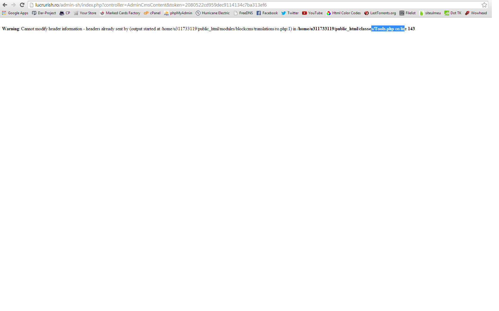 royal27 Posted May 8, 2014 Share Posted May 8, 2014 When i try to update the cms pages shows me this error,how do i fix it?i attached printscreen Warning: Cannot modify header information - headers already sent by (output started at /home/u311733119/public_html/modules/blockcms/translations/ro.php:1) in /home/u311733119/public_html/classes/Tools.php on line 143 Link to comment Share on other sites More sharing options...