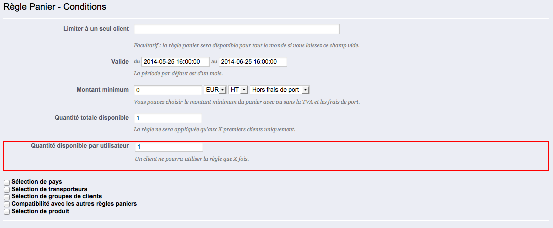 LéniBoy Posted May 25, 2014 Share Posted May 25, 2014 bonjour, Tu peu indiquer que ton coupon n'est utilisable qu'une seul fois pour chaque utilisateur, et ton problème est réglé en une seconde. Sinon tu peu aussi choisir manuellement de l'attribuer certains clients. En tout cas sur la 1.5 bonne journée Link to comment Share on other sites More sharing options...