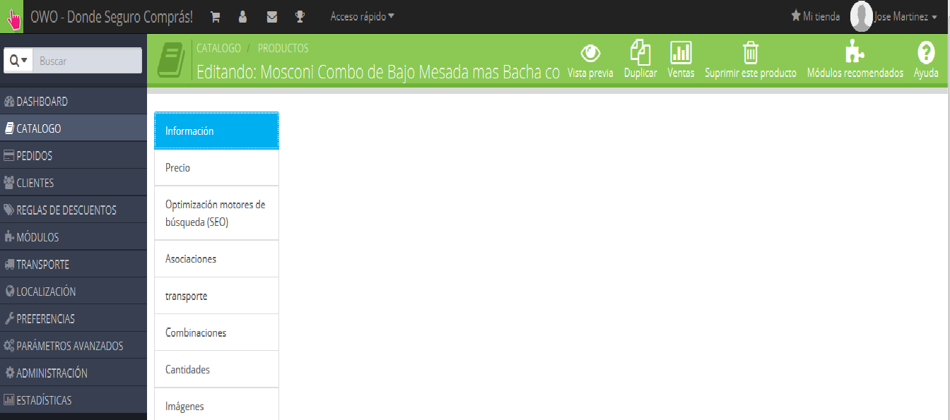Error en el backoffice pagina edición producto datos en blanco presta 1.6