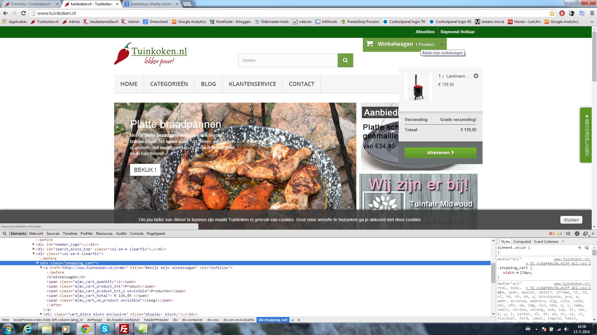 I am trying to speed up my website www.tuinkoken.nl and wanted to use Smart Cache for css, but if I enable the option and clear the cache the style is a little bit messed up. At first the shopping cart is not loading the correct css, see screenshot: