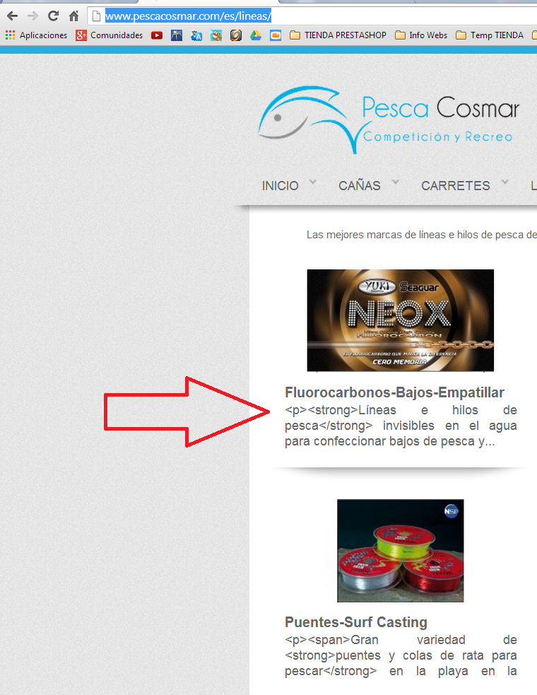 PixelIbiza Posted May 13, 2014 Share Posted May 13, 2014 Hola, Tengo un problema al meter las descripciones de las categorías, ya que cuando picho en el menu desplegable de mi tienda y me presenta las diferentes categorías, debajo de cada foto me sale parte de código html y después el texto limpio y la verdad queda bastante mal. No sé como solucionarlo. Pongo una foto adjunta a ver si alguien me puede orientar. Muchas gracias Link to comment Share on other sites More sharing options...