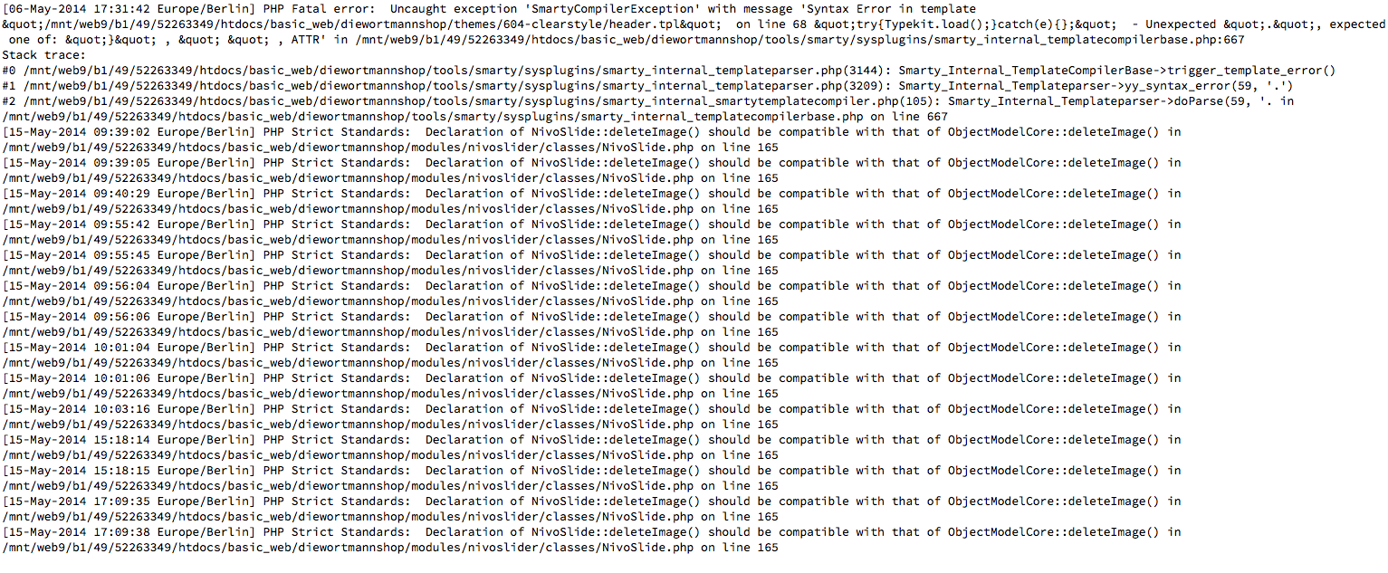 zzzooorrrx Posted May 14, 2014 Share Posted May 14, 2014 Please I really need help with this! Just set up my first shop. All seems to work well. No, nearly all. There is one page in Frontend which always ends in the error 500. The mentioned page is displaying one main category I tried a lot, but no change • checked and adjusted directory permissions • checked and pushed up php.ini settings • debug mode: no errors • no php-error log entries for this page (the file is written, I checked this) • error.log » I can't see any hint (is attached) Are there more ideas to get this solved? thx wolfgang PS 1.5.6.2 The info from Advanced Settings » Configuration Template: 604-clearstyle Version der Server-Software: Apache/2.2.26 (Unix) PHP-Version: 5.3.28 Speichergrenze: 512M max_execution_time: 120 This info from info.php file: max_execution_time: 300 max_input_vars: 5000 memory_limit: 256M Link to comment Share on other sites More sharing options...
