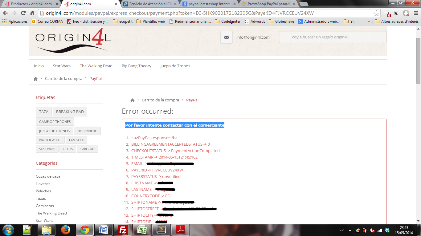 nosotros tenemos la misma versión de prestashop y de pay pal y nos sale el siguiente error: