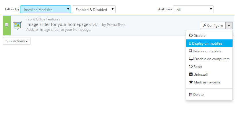 Arafat Jahan Posted September 1, 2014 Share Posted September 1, 2014 Hi, Yes the new Prestashop 1.6 your slider will show on browser small size but will not show the actual device. And yes this is A very GOOD news instead of bad. WHY? From now you can control your all module for Show/Not Show on Mobile/Tablet/Desktop device. So now it is more easy to hide or show module on each device !!! ROCK ON!!! For your case check attach. Please mark this post as [sOLVED] as i know this is the exactly problem you facing.... Thanks, Arafat Link to comment Share on other sites More sharing options...