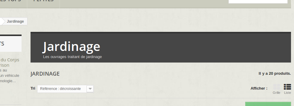 moilamain Posted June 30, 2015 Share Posted June 30, 2015 Bonjour Prestashop Newbie est-ce que tu peux expliquer comment on inactive l'affichage des images dans les bandeaux indiquant le nom de la catégorie ? dans quel fichier faut-il intervenir (le nom du fichier) et à quel ligne...? (je ne maitrise pas du tout css et tpl) J'ai cet affichage : et j'aimerais transformé en cet affichage : tout en gardant les vignettes carrées : Merci d'avance Ma boutique et mes problèmes : http://librairie-permaculturelle.fr/15-livre Link to comment Share on other sites More sharing options...