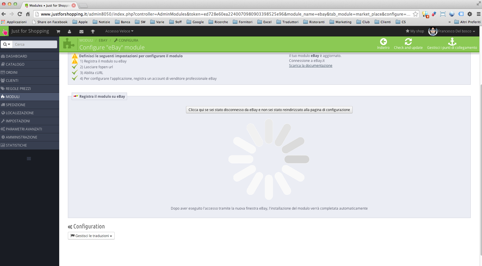 ho installato il modulo di ebay per prestashop 1.6.0.5 ma ho riesco a configurarlo.