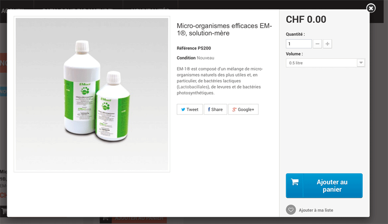 chocoweb Posted May 20, 2014 Author Share Posted May 20, 2014 Bonjour, J'ai une erreur d'affichage de prix en mode Aperçu. Le prix affiché est 0.00. Par contre dans le panier et page d'accueil il s'affiche correctement. Si je saisis le produit sans rajouter des déclinaisons le tout s'affiche correctement aussi en mode aperçu. En fichier joint deux images print screen. Quelqu'un peut m'aider svp ? Merci Problème résolu en remplaçant le fichier product.js Link to comment Share on other sites More sharing options...