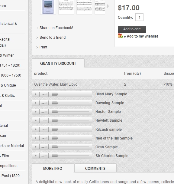 Maryr4277 Posted May 21, 2014 Share Posted May 21, 2014 Hello - our store specializes in print music, and we have sound samples to help people hear the music before they purchase. Recently we updated to 1.5.6.2 and our "add mp3 to product" module no longer works. I am attaching a screen shot of how our sound samples are presented on the page. I am not looking for a module to play background music, but one to upload specific samples for specific products. The existing samples work, but I am unable to upload anymore because the module is not supported by 1.5.6.2. Does anyone have suggestions? Thanks. Link to comment Share on other sites More sharing options...