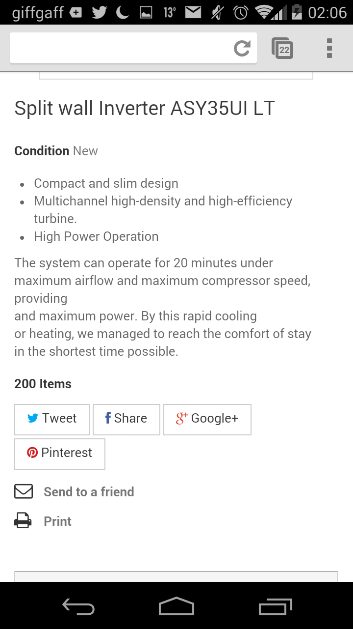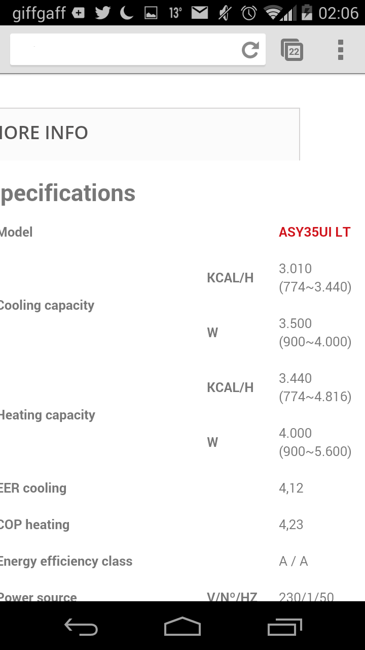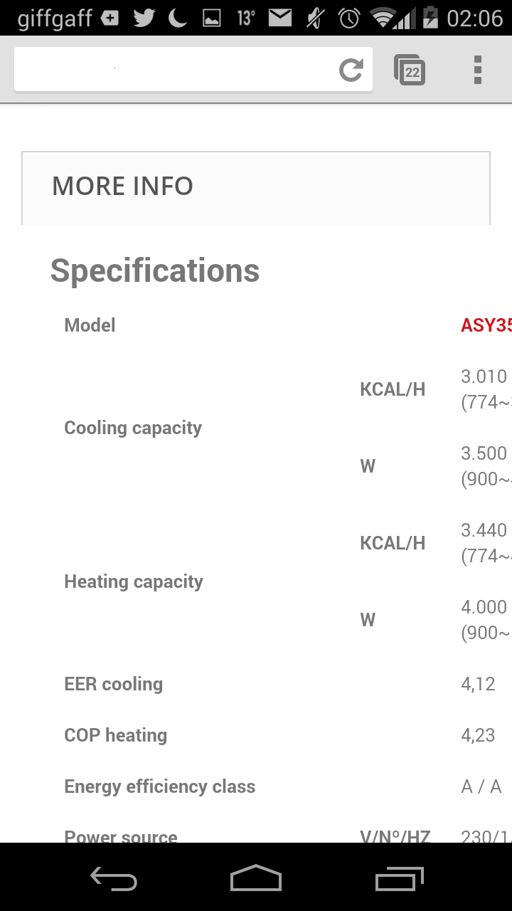 escorpiorising Posted May 23, 2014 Author Share Posted May 23, 2014 this is my source code, there is just one table <h3><strong>Specifications</strong></h3> <div class="table-responsive"> <table class="table table-bordered"> <tbody> <tr> <td colspan="2"> <p><strong>Model</strong></p> </td> <td> <p><span style="color: #d0121a;"><strong>ASY25UI LT</strong></span></p> </td> </tr> <tr> <td rowspan="2"> <p><strong>Cooling capacity </strong></p> </td> <td> <p><strong>KCAL/H</strong></p> </td> <td> <p>2.150 (430~2.752)</p> </td> </tr> <tr> <td> <p><strong>W</strong></p> </td> <td> <p>2.500 (500~3.200)</p> </td> </tr> <tr> <td rowspan="2"> <p><strong>Heating capacity</strong></p> </td> <td> <p><strong>KCAL/H</strong></p> </td> <td> <p>2.752 (430~3.612)</p> </td> </tr> <tr> <td> <p><strong>W</strong></p> </td> <td> <p>3.200 (500~4.200)</p> </td> </tr> <tr> <td colspan="2"> <p><strong>EER cooling</strong></p> </td> <td> <p>4,5</p> </td> </tr> <tr> <td colspan="2"> <p><strong>COP heating</strong></p> </td> <td> <p>4,71</p> </td> </tr> <tr> <td colspan="2"> <p><strong>Energy efficiency class</strong></p> </td> <td> <p>A / A</p> </td> </tr> <tr> <td> <p><strong>Power source</strong></p> </td> <td> <p><strong>V/Nº/HZ</strong></p> </td> <td> <p>230/1/50</p> </td> </tr> <tr> <td> <p><strong>Input power</strong></p> </td> <td> <p><strong>KW</strong></p> </td> <td> <p>0,55/0,68</p> </td> </tr> <tr> <td> <p><strong>Air flow rate indoor (min-max)</strong></p> </td> <td> <p><strong>m³/h</strong></p> </td> <td> <p>300~590</p> </td> </tr> <tr> <td> <p><strong>Air flow rate outdoor (max)</strong></p> </td> <td> <p><strong>m³/h</strong></p> </td> <td> <p>1.850</p> </td> </tr> <tr> <td> <p><strong>Sound pressure indoor A/M/B/SQ</strong></p> </td> <td> <p><strong>Db (A)</strong></p> </td> <td> <p>42/36/30/21</p> </td> </tr> <tr> <td> <p><strong>Sound pressure outdoor</strong></p> </td> <td> <p><strong>Db (A)</strong></p> </td> <td> <p>48</p> </td> </tr> <tr> <td rowspan="3"> <p><strong>Dimension indoor </strong></p> <p><strong> </strong></p> <p><strong> </strong></p> </td> <td> <p><strong>W(mm)</strong></p> </td> <td> <p>870</p> </td> </tr> <tr> <td> <p><strong>D(mm)</strong></p> </td> <td> <p>185</p> </td> </tr> <tr> <td> <p><strong>H(mm)</strong></p> </td> <td> <p>282</p> </td> </tr> <tr> <td rowspan="3"> <p><strong>Dimension outdoor </strong></p> <p><strong> </strong></p> <p><strong> </strong></p> </td> <td> <p><strong>W(mm)</strong></p> </td> <td> <p>660</p> </td> </tr> <tr> <td> <p><strong>D(mm)</strong></p> </td> <td> <p>290</p> </td> </tr> <tr> <td> <p><strong>H(mm)</strong></p> </td> <td> <p>540</p> </td> </tr> <tr> <td> <p><strong>Net weight (indoor/outdoor) </strong></p> </td> <td> <p><strong>(Kg)</strong></p> </td> <td> <p>9,5/35</p> </td> </tr> <tr> <td> <p><strong>Piper diameter</strong></p> </td> <td> <p><strong>(inch)</strong></p> </td> <td> <p>1/4" - 3/8"</p> </td> </tr> <tr> <td> <p><strong>Max pipe lenght/Max height difference </strong></p> </td> <td> <p><strong>(m)</strong></p> </td> <td> <p>20/15</p> </td> </tr> <tr> <td> <p><strong>Refrigerant</strong></p> </td> <td> <p><strong> </strong></p> </td> <td> <p>R410A</p> </td> </tr> <tr> <td rowspan="2"> <p><strong>Operation range</strong></p> </td> <td> <p><strong>cooling ºC</strong></p> </td> <td> <p>-10 +43</p> </td> </tr> <tr> <td> <p><strong>Heating ºC</strong></p> </td> <td> <p>-20 +24</p> </td> </tr> </tbody> </table> </div> Link to comment Share on other sites More sharing options...
