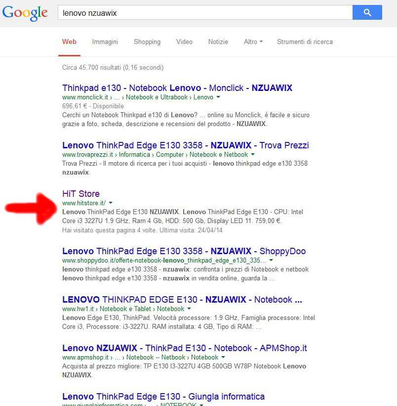 hitstore Posted May 22, 2014 Share Posted May 22, 2014 Salve a tutti, credo che il mio problema sia una stupidaggine, ma non riesco a capire come poterlo correggere. In pratica se faccio una ricerca su google di un articolo presente sul negozio, noto che sono abbastanza ben posizionato... ma la visualizzazione della riga da cliccare è diversa dalle altre non presentando risposta a quello che si è cercato, ma indicando solo il nome della homepage. Cliccando sul link in effetti mi apre la home e non la pagina relativa al prodotto cercato. Ho allegato una foto evidenziando la mia posizione. Grazie per l'eventuale aiuto. Link to comment Share on other sites More sharing options...