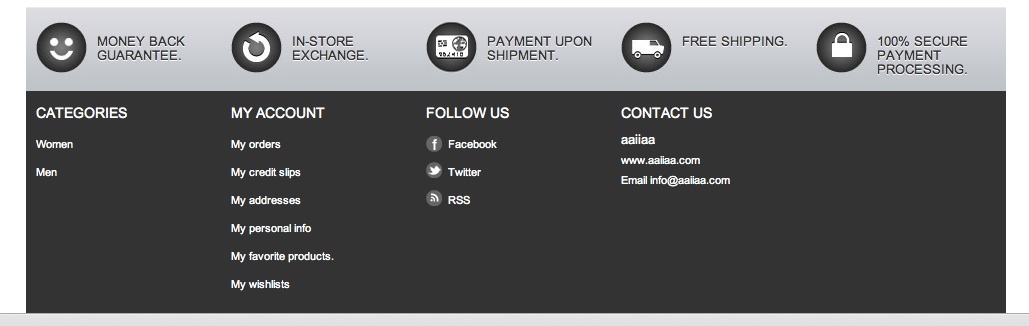 vekia Posted May 24, 2014 Share Posted May 24, 2014 you mean that you want to remove it at all? this is footer section you can manage items there with modules >positions tab search for dispalyFooter modules list and just disable these modules if you want to edit this section go to modules> modules and click on configure button near these modules from displayFooter list. Link to comment Share on other sites More sharing options...