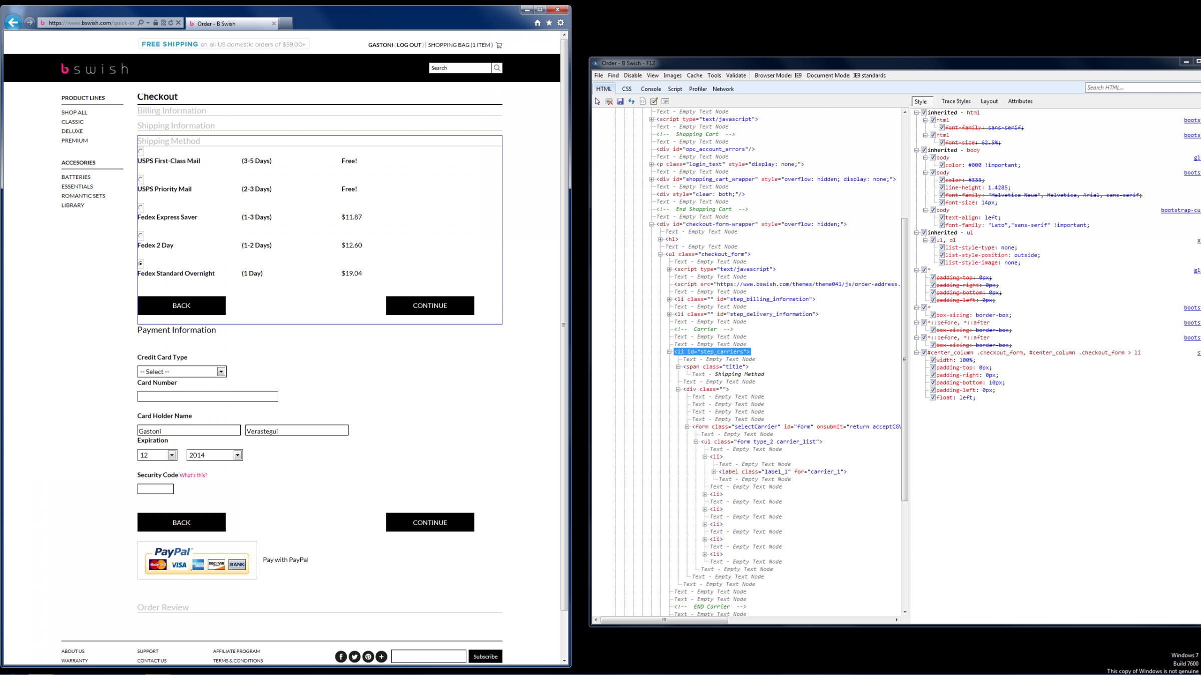 - After you enter your address the next step to select a shipping method it where is breaks!
