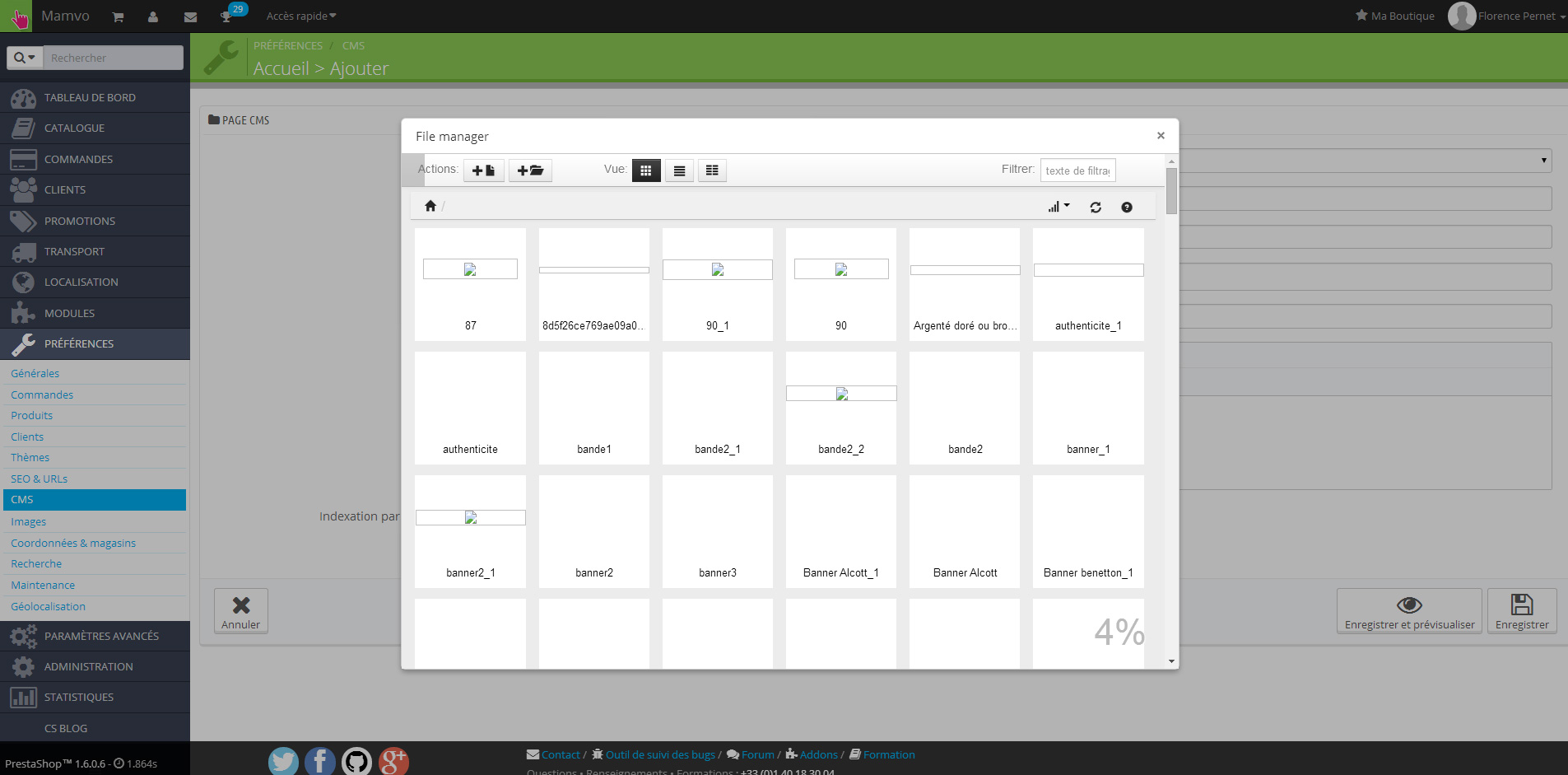 fpernet Posted May 27, 2014 Share Posted May 27, 2014 Bonjour, Depuis le passage à la version 1,6,0,6 je n'arrive plus à importer de visuels depuis le backoffice. Voici un screenshot de mon backoffice en PJ : Avez-vous eu le même problème ? Savez-vous d'où cela peut venir ? J'ai testé différents ordi, différents navigateurs et effacé mes cookies et mon cache : le problème est toujours là ! Merci d'avance pour vos réponse, Florence Link to comment Share on other sites More sharing options...