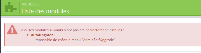 PhotosSitesCréation Posted May 27, 2014 Share Posted May 27, 2014 Bonjour à tous Alors que ce module fonctionnait auparavant, je m'aperçois qu'à ce jour j'ai de gros problèmes avec. En effet, lorsque je clique sur le lien pour aller sur la page du module, j'ai comme message un petit triangle d'attention, avec le message accès interdit. Je désinstalle le module, puis le supprime, et le réinstalle. Lors de la réinstallation, j'ai un message d'erreur (voir PJ). Quelqu'un pourrait il m'aider? Je précise que je suis avec la version 1.6.0.6 de PS. Merci par avance. Link to comment Share on other sites More sharing options...
