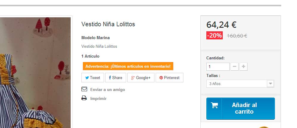 mscapis2 Posted May 28, 2014 Share Posted May 28, 2014 (edited) Hola a todos, tengo un problema. He generado una regla de precio para el catálogo Aplicado a una marca. El precio se muestra bien en la página de inicio. Se ve el precio con descuento, el porcentaje de descuento y el precio sin descuento, todo en orden. Pero cuando hago click en el producto y se abre, aparece el precio con descuento y el porcentaje, pero el precio original del artículo se muestra erróneo, en todos los artículos con la regla de precio pasa lo mismo. Alguien sabe como puedo solucionarlo? Estoy usando Prestashop 1.6 y la plantilla por defecto. Gracias Edited May 28, 2014 by mscapis2 (see edit history) Link to comment Share on other sites More sharing options...