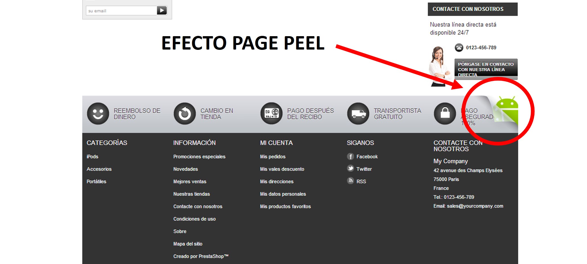 Alguien podria echarme una mano.... Resulta que encontré en el foro de prestashop un modulo muy bueno y a la vez gratis !! del efecto Page Pell, lo instale en mi pagina, pero no aparece correctamente en la esquina superior derecha... Me aparece en la parte final de la tienda y no se que debo hacer para que aparezca donde debe ser. (Adjunto capturas de pantalla para que vean el error que me presenta).