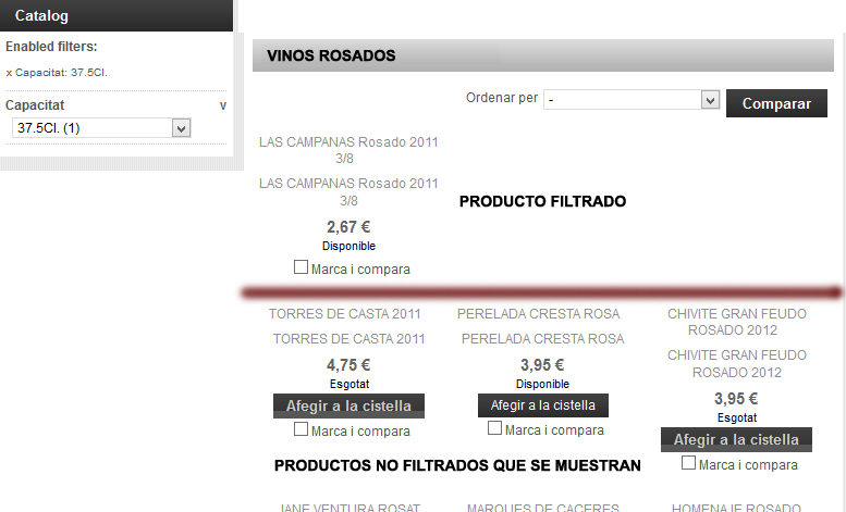 shashas Posted May 29, 2014 Share Posted May 29, 2014 Hola muy buenas a todos. Expongo mi problema. He activado el módulo de Navegación por Facetas de Prestashop 1.4.5, todo correcto, he creado un filtro para una categoria en concreto, pero en el momento de seleccionar los filtros a mostrar (a base de características), no se muestran únicamente los productos que tengan esas características, primero se muestran los que tienen esas características y luego todos.... No sé si me he explicado correctamente. Espero que me puedan ayudar con mi problema. Pongo dos muestras de imagenes para que vean cual es el problema. (No hay imágenes de productos, ya que es una prueba en local, en la tienda definitiva pasa lo mismo). Link to comment Share on other sites More sharing options...