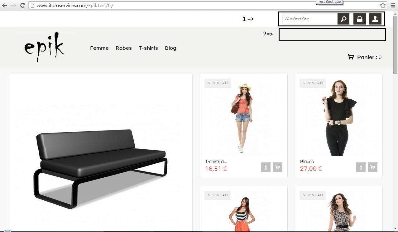 I want to move the bloc "recherche rapide" and "informations clients" and put them in "menu horizontal" wich will allow me to reduce the header's height and change slightly its position.