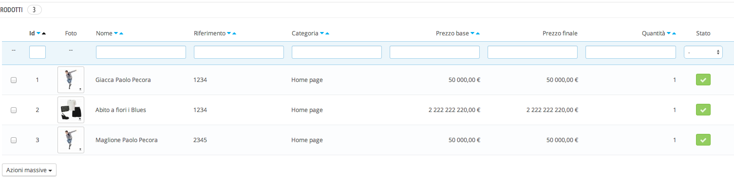 vestire Posted June 1, 2014 Share Posted June 1, 2014 Buongiorno a tutti, ringrazio anticipatamente chi vuole aiutarmi, sono nuovo con prestashop, dopo anni di e-commerce con un'altra piattaforma (ECWID) che oramai mi sta stretta, ho deciso di passare a prestashop, mi sono letto tutto o quasi, inoltre non sono nuovo con cms, html, css, php, seo e affini, ma adesso mi trovo di fronte ad una serie di problemi. Premetto, ho installato prestashop 1.6 , ho pulito immediatamente il magazzino da articoli categorie prodotti ecc.. ho installato un nuovo tema comprato regolarmente. Ho quasi finito tutti i settaggi, categorie, spedizioni, ecc... problema 1) come test ho inserito un prodotto, messe tutte le informazioni, aggiunto le immagini e qui arriva il problema, (come da allegato) le miniature vengono caricate regolarmente nella scheda prodotti ma non si vedono nel negozio fisico è come se non ci fosse l'immagine problema 2) è normale che l'URL prodotto abbia un numero davanti es: www.miosito.it/home/2-abito-donna-fiori.html oppure se clicco sulla categoria l'url è www.miosito.it/2-abiti grazie Maurizio 1 Link to comment Share on other sites More sharing options...
