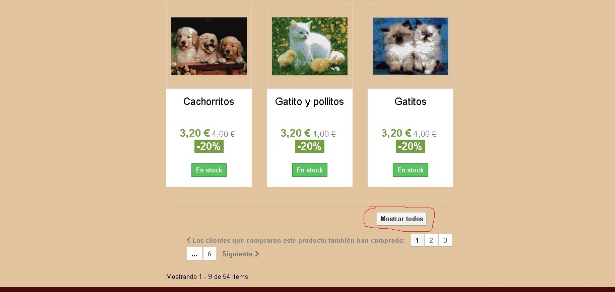 S-HAMMANI Posted June 1, 2014 Share Posted June 1, 2014 (edited) Hola; Dos soluciones posibles;Primero: se añade a la "clase showall" una "display: none;" en global.css en linia ~6307 .bottom-pagination-content div.pagination .showall { display:none; float: right; margin: 8px 53px 8px 14px; } ...... La segunda es para comentar o eliminar el archivo pagination.tpl el siguiente código: {if $nb_products > $products_per_page && $start!=$stop} <form class="showall" action="{if !is_array($requestNb)}{$requestNb}{else}{$requestNb.requestUrl}{/if}" method="get"> <div> {if isset($search_query) AND $search_query} <input type="hidden" name="search_query" value="{$search_query|escape:'html':'UTF-8'}" /> {/if} {if isset($tag) AND $tag AND !is_array($tag)} <input type="hidden" name="tag" value="{$tag|escape:'html':'UTF-8'}" /> {/if} <button type="submit" class="btn btn-default button exclusive-medium"> <span>{l s='Show all'}</span> </button> {if is_array($requestNb)} {foreach from=$requestNb item=requestValue key=requestKey} {if $requestKey != 'requestUrl'} <input type="hidden" name="{$requestKey|escape:'html':'UTF-8'}" value="{$requestValue|escape:'html':'UTF-8'}" /> {/if} {/foreach} {/if} <input name="n" id="nb_item" class="hidden" value="{$nb_products}" /> </div> </form> {/if} Edited June 1, 2014 by S-HAMMANI (see edit history) Link to comment Share on other sites More sharing options...